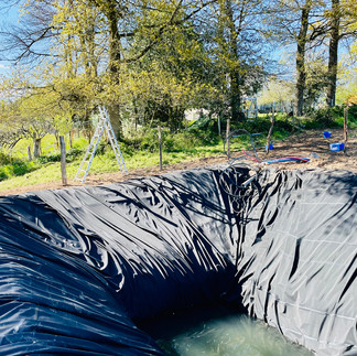 Nous avons dévié toute l'eau de le toiture de notre maison vers un bassin bâché, afin d'être autonome en été.